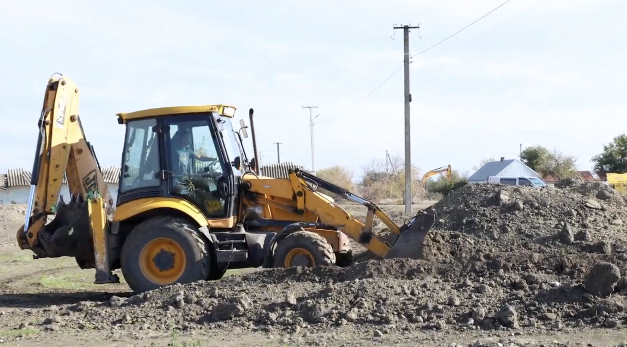 Працівник на відновлювальник роботах у Посад-Покровському. Олександр Андрющенко/"Вгору"