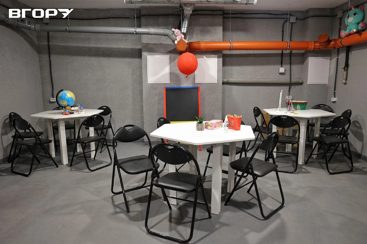 Приміщення облаштоване для тривалого перебування: є місця для сидіння та спальні місця. Мешканці розповідають, що сюди часто приходять навіть у відсутність повітряної тривоги – для зустрічей, дитячих занять та спорту.