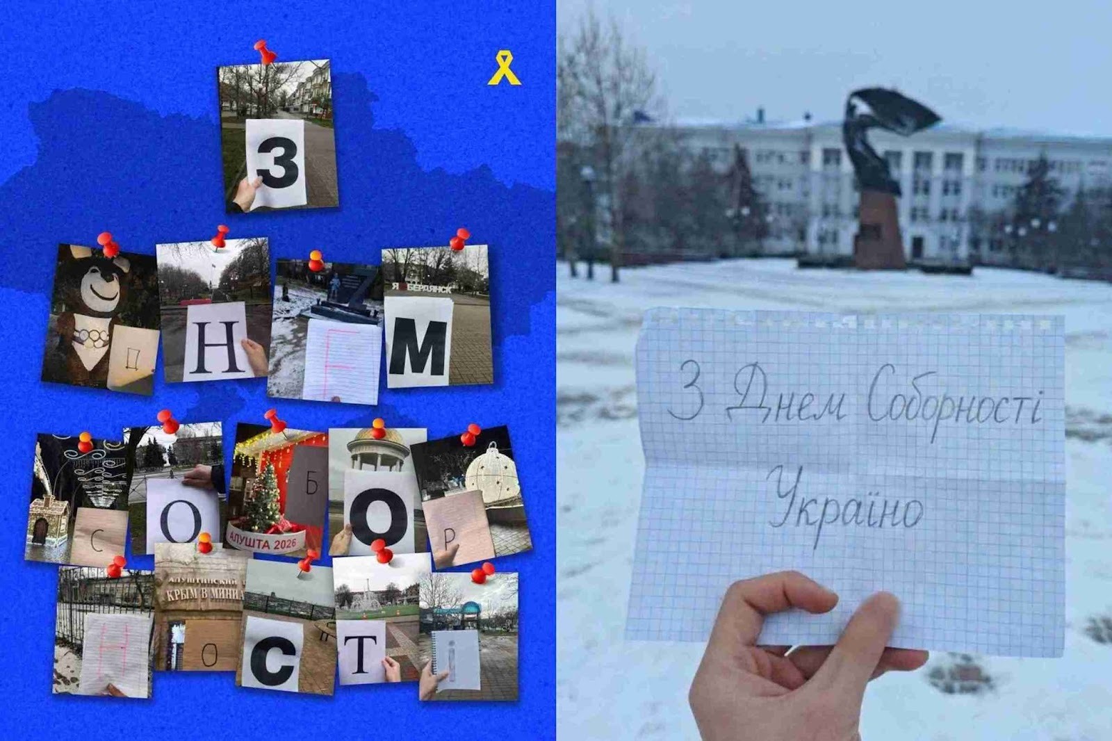 А 22 січня, до Дня Соборності України, «Жовта стрічка» провела ще одну символічну акцію. У тимчасово окупованих містах українці фотографували окремі літери алфавіту. У підсумку всі фото об'єднали в єдине символічне послання.