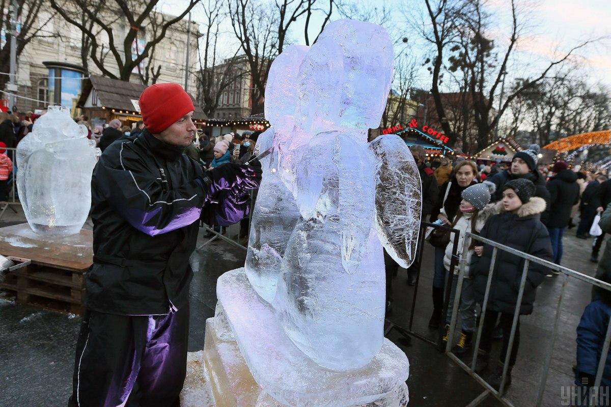 У Львові біля головної ялинки міста скульптори створили дивовижні льодові фігури.