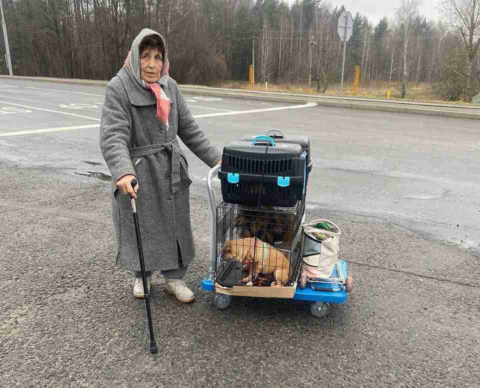 Жителька Олешок виїхала з окупації разом із п’ятьма тваринами. Фото: Ksenia Arkhipova