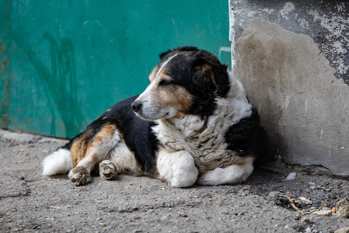 Собака у Херсоні, квітень 2026 року. Фото: Олександра Андрющенка/”Вгору”