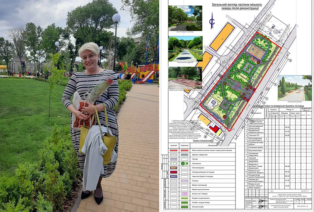 На відкритті міського скверу у Голій Пристані, реконструйованого за проєктом Лариси. Червень 2020 року.