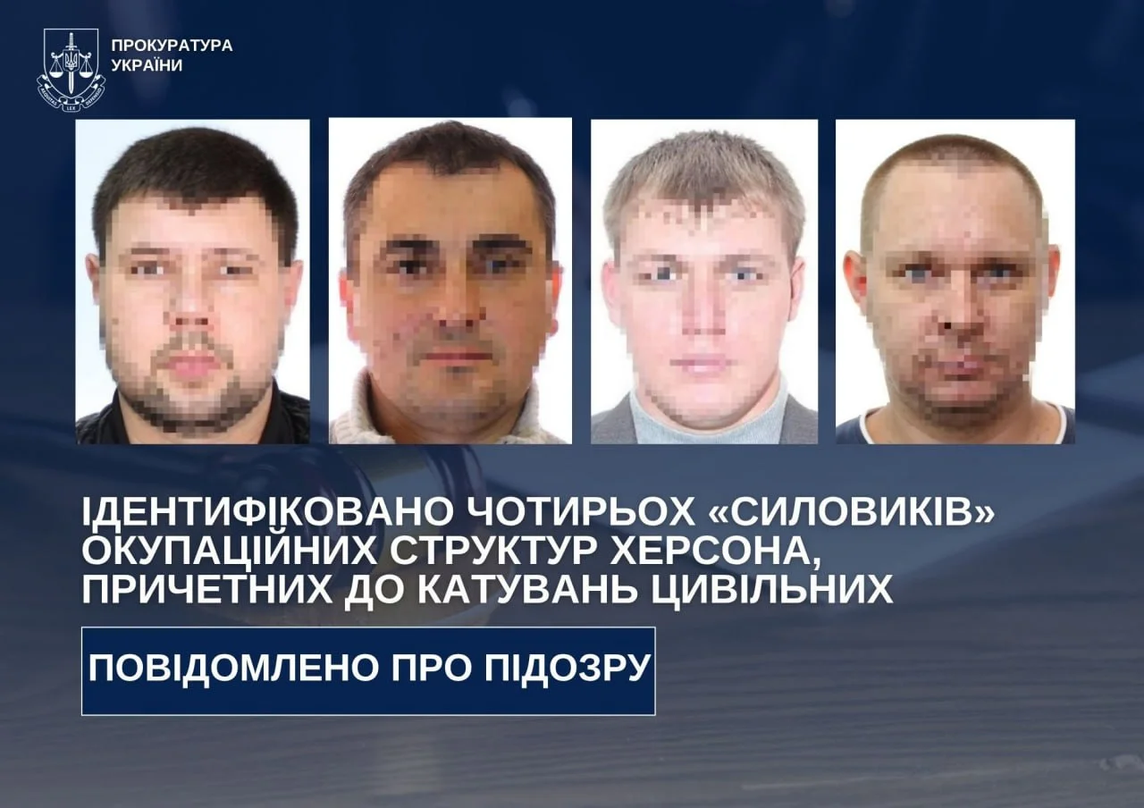 Херсонська обласна прокуратура заочно повідомила про підозру чотирьом учасникам окупаційних структур, яких підозрюють у жорстокому поводженні з цивільними під час окупації Херсона. Серед них — співробітник ФСБ РФ та троє незаконних поліцейських.