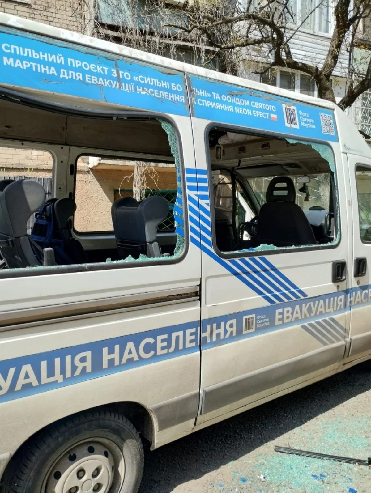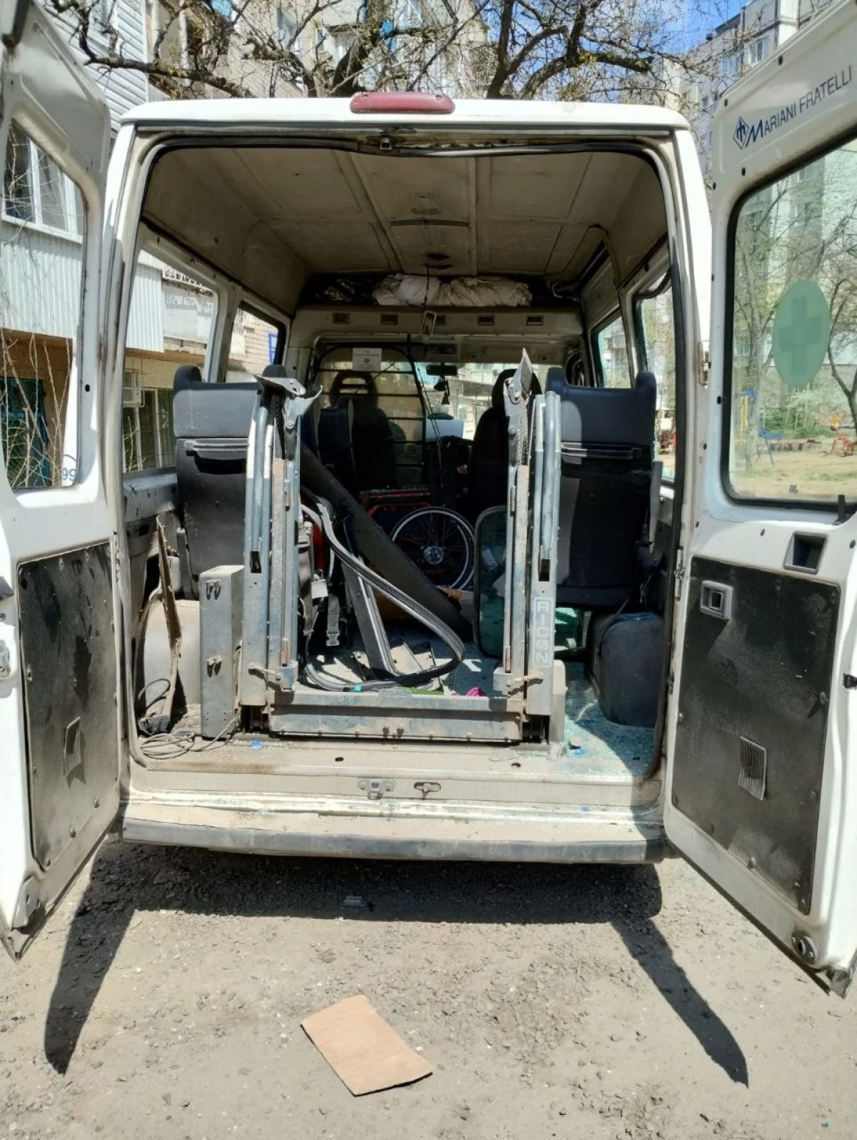 За його словами, основний удар припав на автомобіль соціального таксі, яке працює в межах спільного проєкту організації та ХМВА. Цей проєкт допомагає самотнім людям і людям з інвалідністю дістатися до лікарень, банків і соцслужб, також його використовують для маломобільних і лежачих людей.
