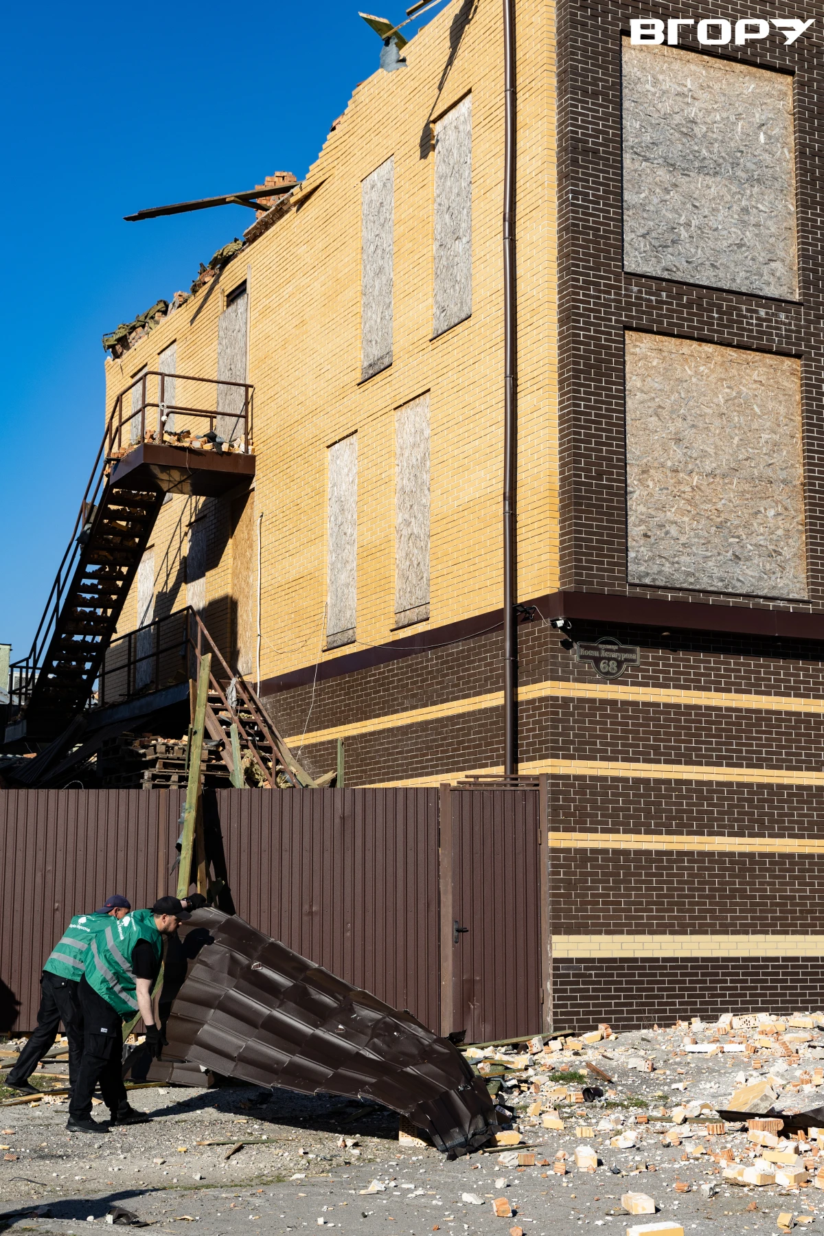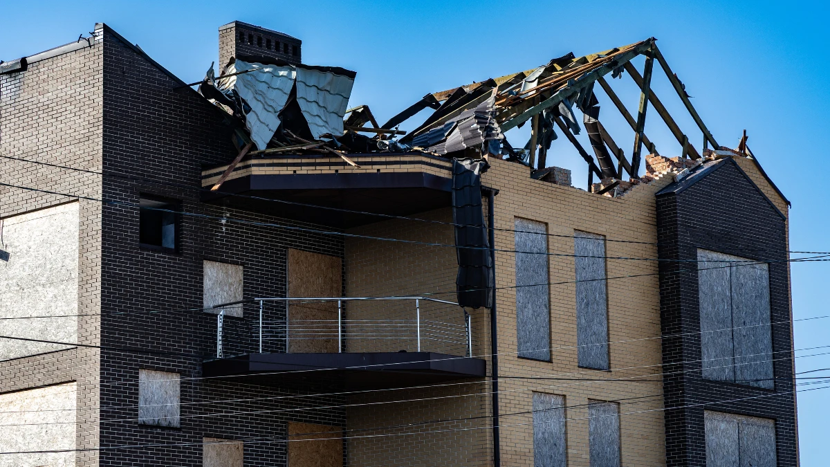На світлинах видно пошкоджену покрівлю та стіни однієї з будівель, яка потрапила під удар.