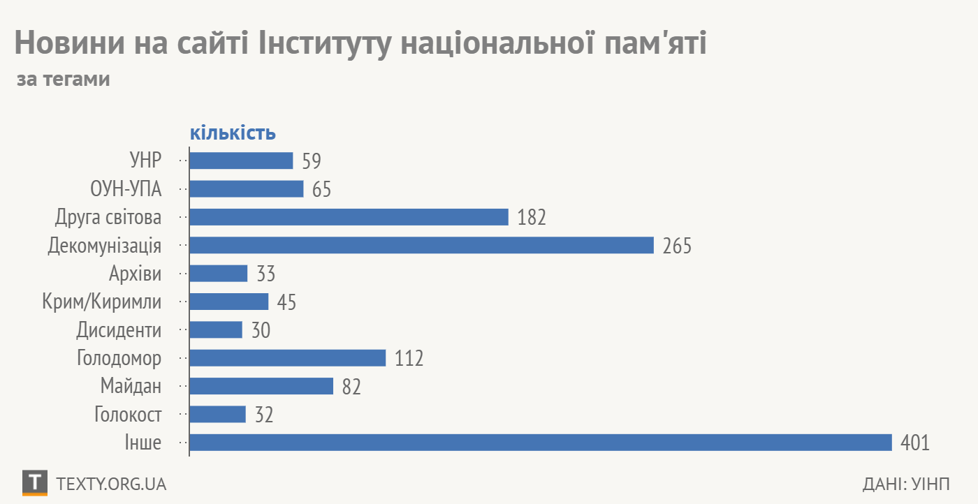 До теми декомунізації УІНП звертався найчастіше – це п’ята частина усіх новин сайту.