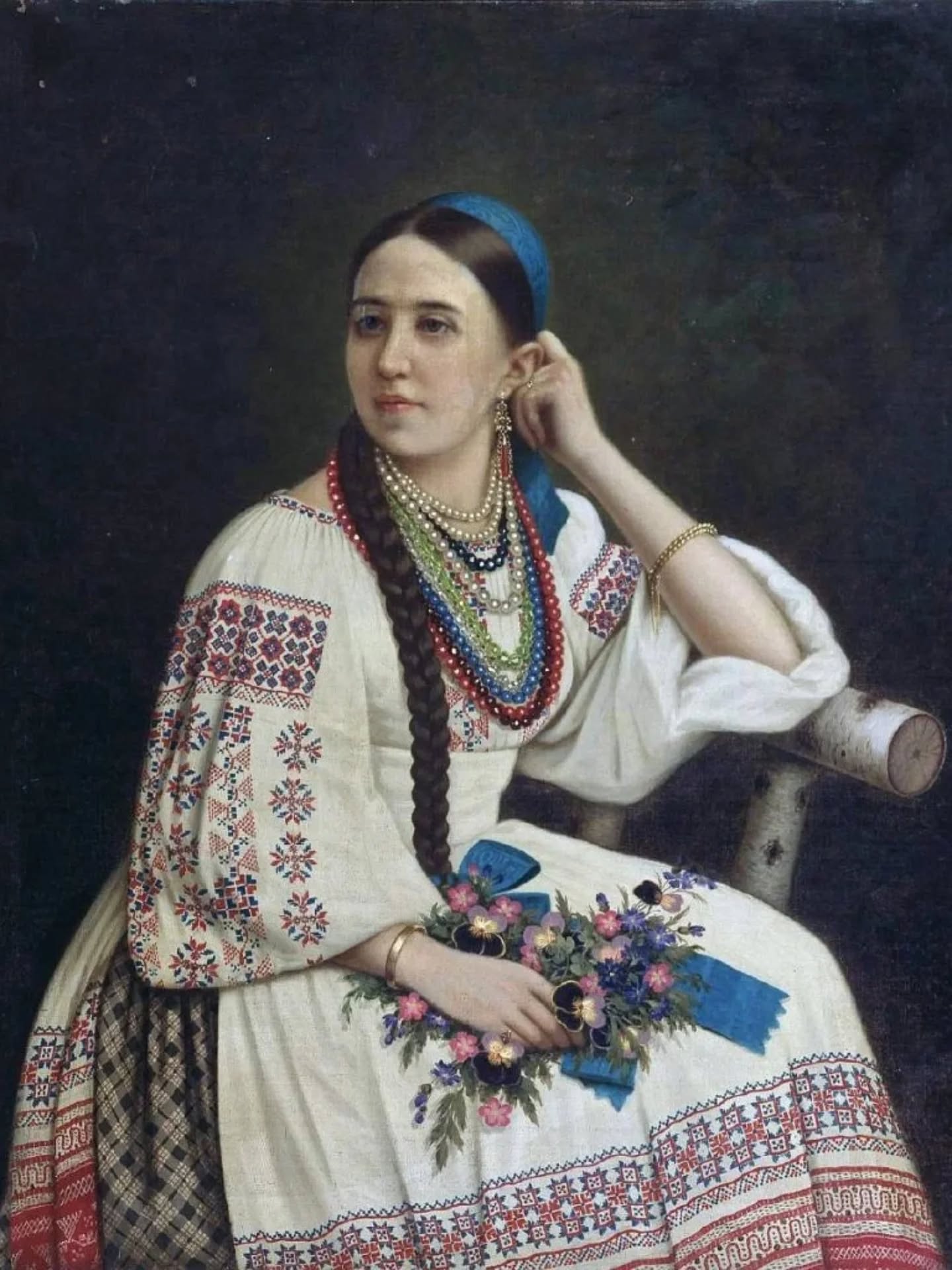 Картина Михайла Брянського "Портрет дівчини у вишиваній сукні". Зображення зі сторінки Херсонського художнього музею у фейсбуці.