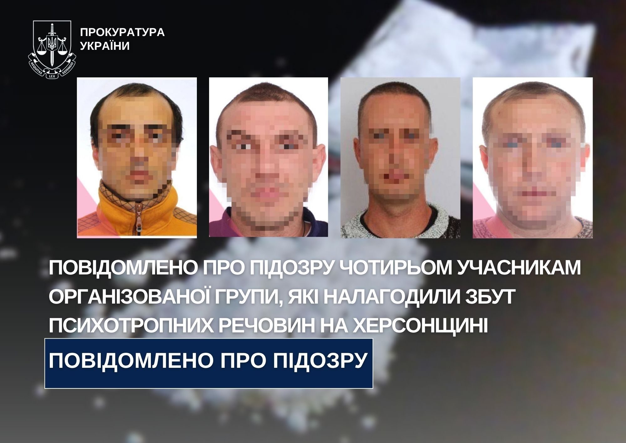 Чотирьом жителям Херсонської області оголосили про підозру у незаконному придбанні, зберіганні та збуті особливо небезпечних психотропних речовин.