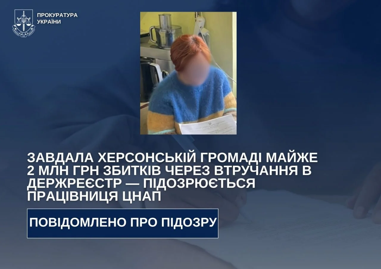 Працівниці ЦНАП повідомили про підозру через несанкціоноване втручання в державний реєстр, яке завдало Херсонській громаді майже 2 млн грн збитків.