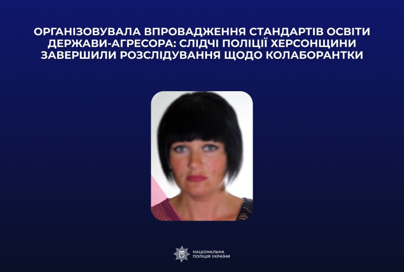 Слідчі поліції Херсонщини скерували до суду обвинувальний акт стосовно 38-річної жительки Херсона. У серпні 2022 року вона добровільно обійняла посаду окупаційного заступника директора з навчальної роботи у захопленому Херсонському морському фаховому коледжі рибної промисловості.