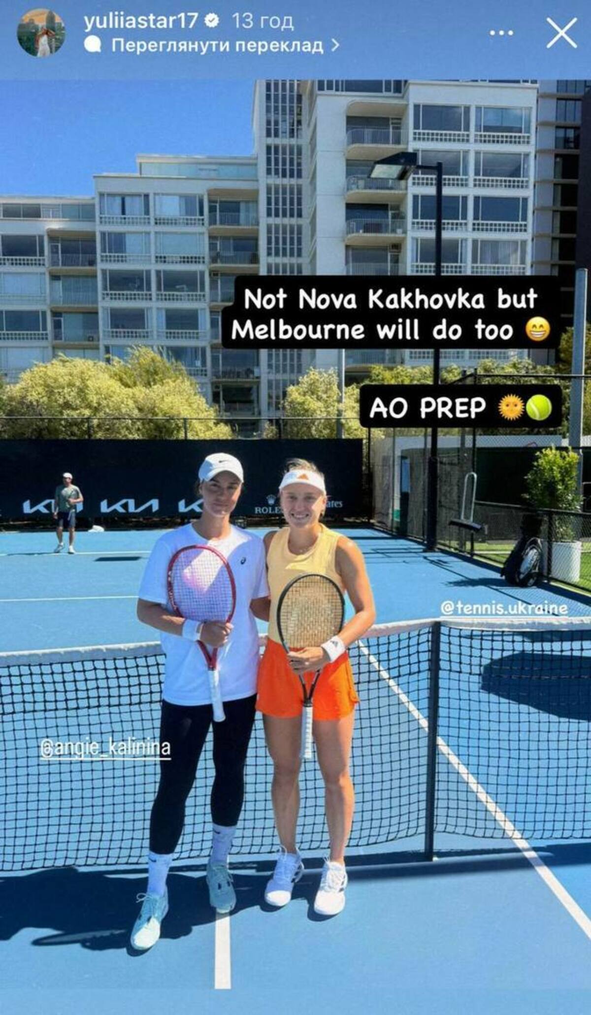 Українські тенісистки родом з Херсонщини Юлія Стародубцева (WTA 110) та Ангеліна Калініна (WTA 178) разом потренувалися на Australian Open 2026.