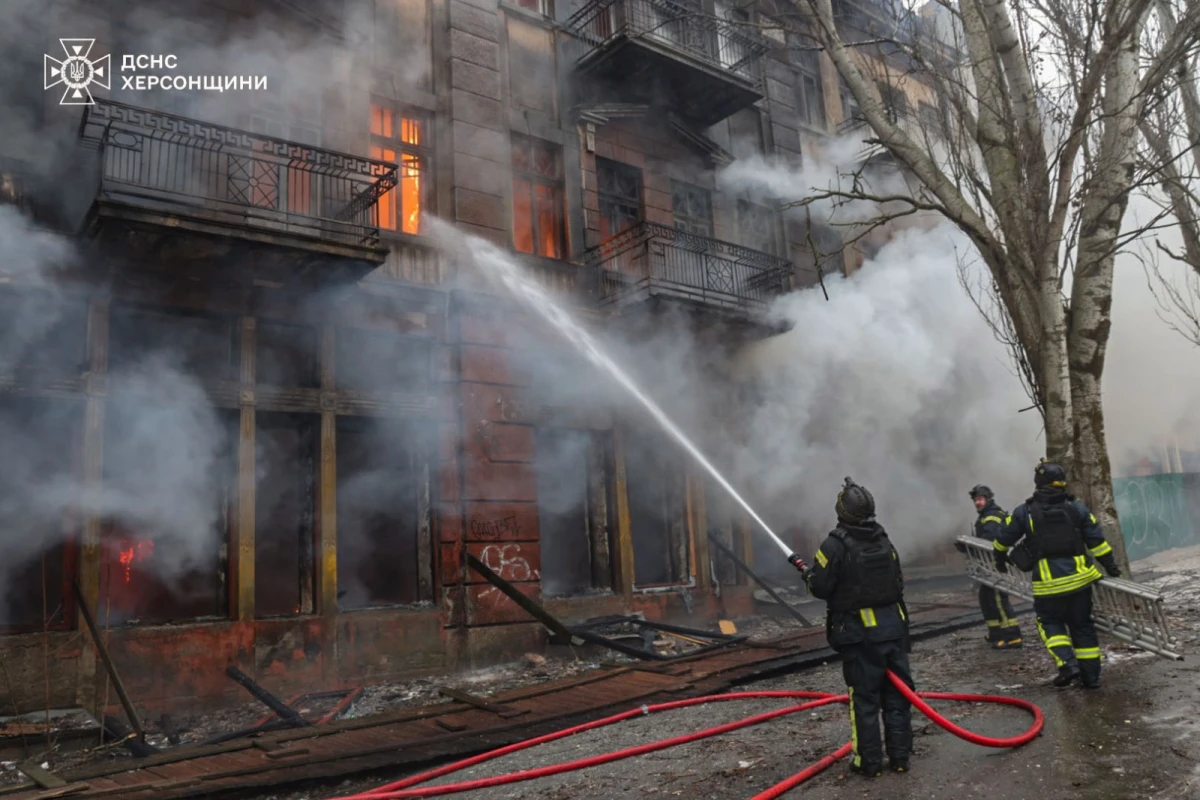 У старій частині Херсона 26 січня внаслідок артилерійського удару російських військ спалахнула масштабна пожежа у триповерховій нежитловій будівлі – колишньому готелі «Європейський» (пізніше – «1 Травня»), найбільшому й найпрестижнішому готелі міста початку 20 століття.