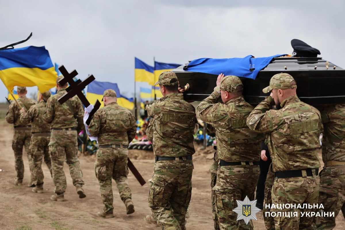 Церемонія прощання із загиблим капітаном поліції Віталієм Кухарчуком, який служив у батальйоні поліції особливого призначення у Херсоні, відбулася 7 квітня 2026 року.