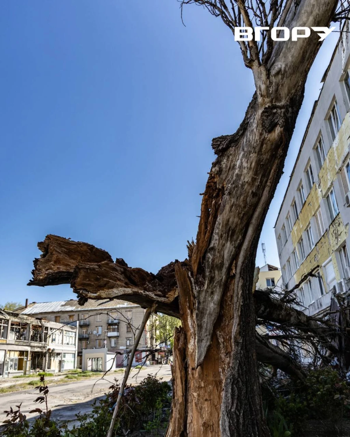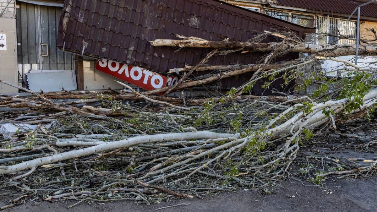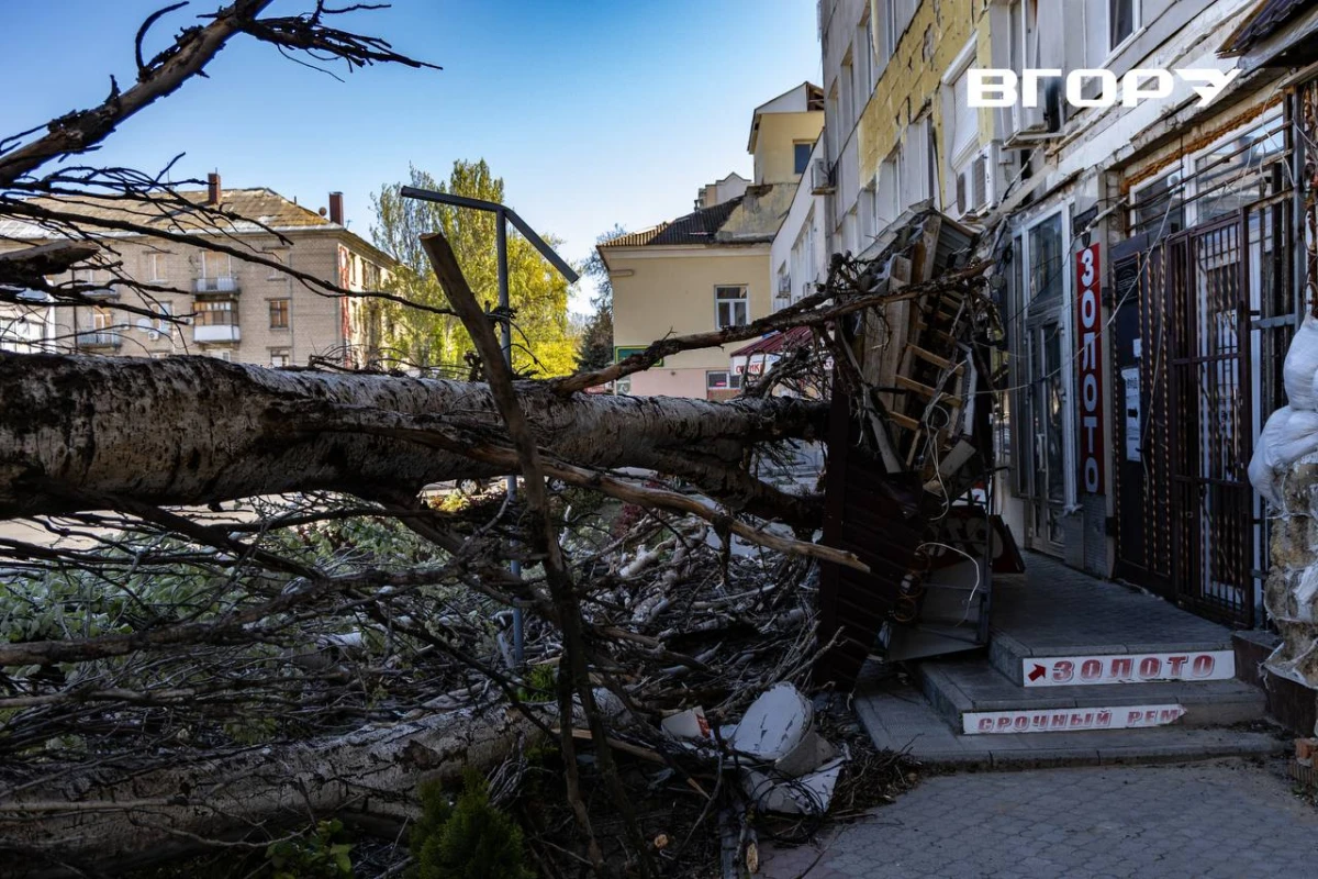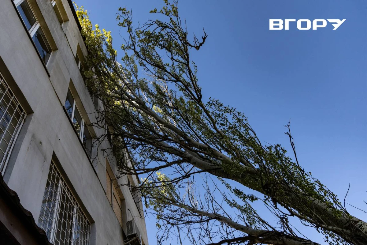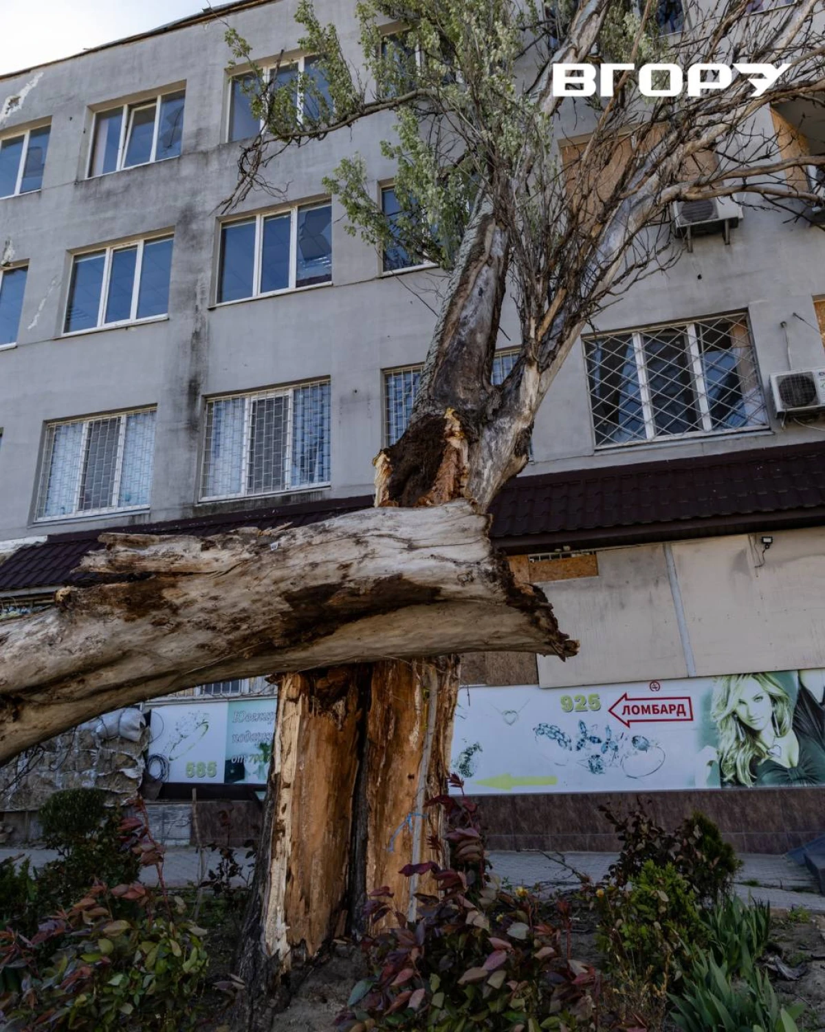 Кореспондент “Вгору” зафіксував, як виглядає Херсон після негоди. На фото видно, що частина дерев впала на будівлі.