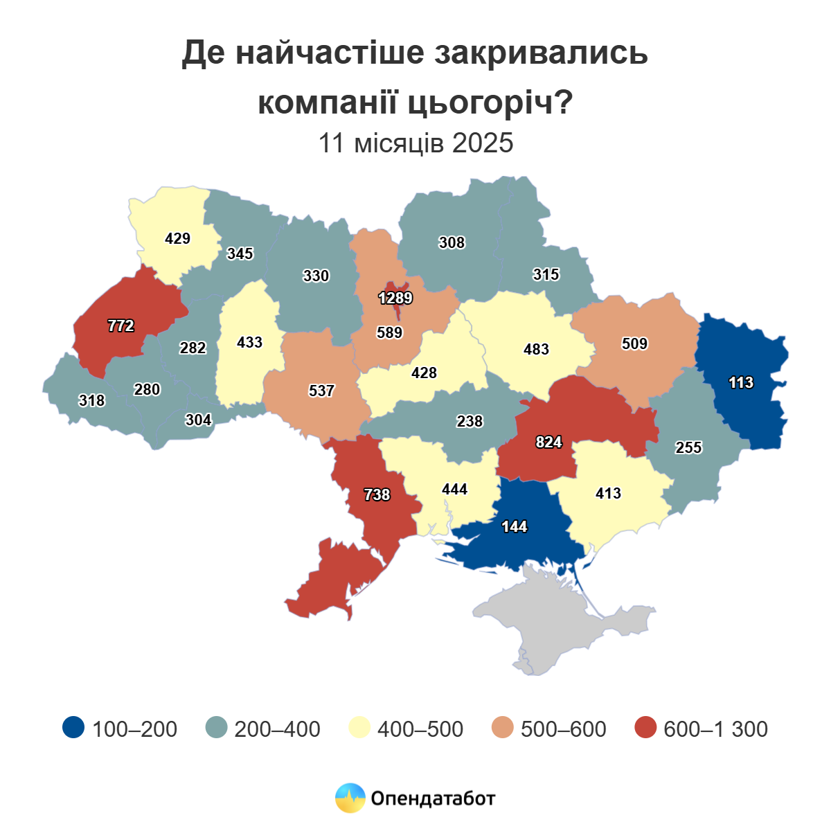 Від початку 2025 року у Херсонській області припинили свою діяльність понад 144 компанії.