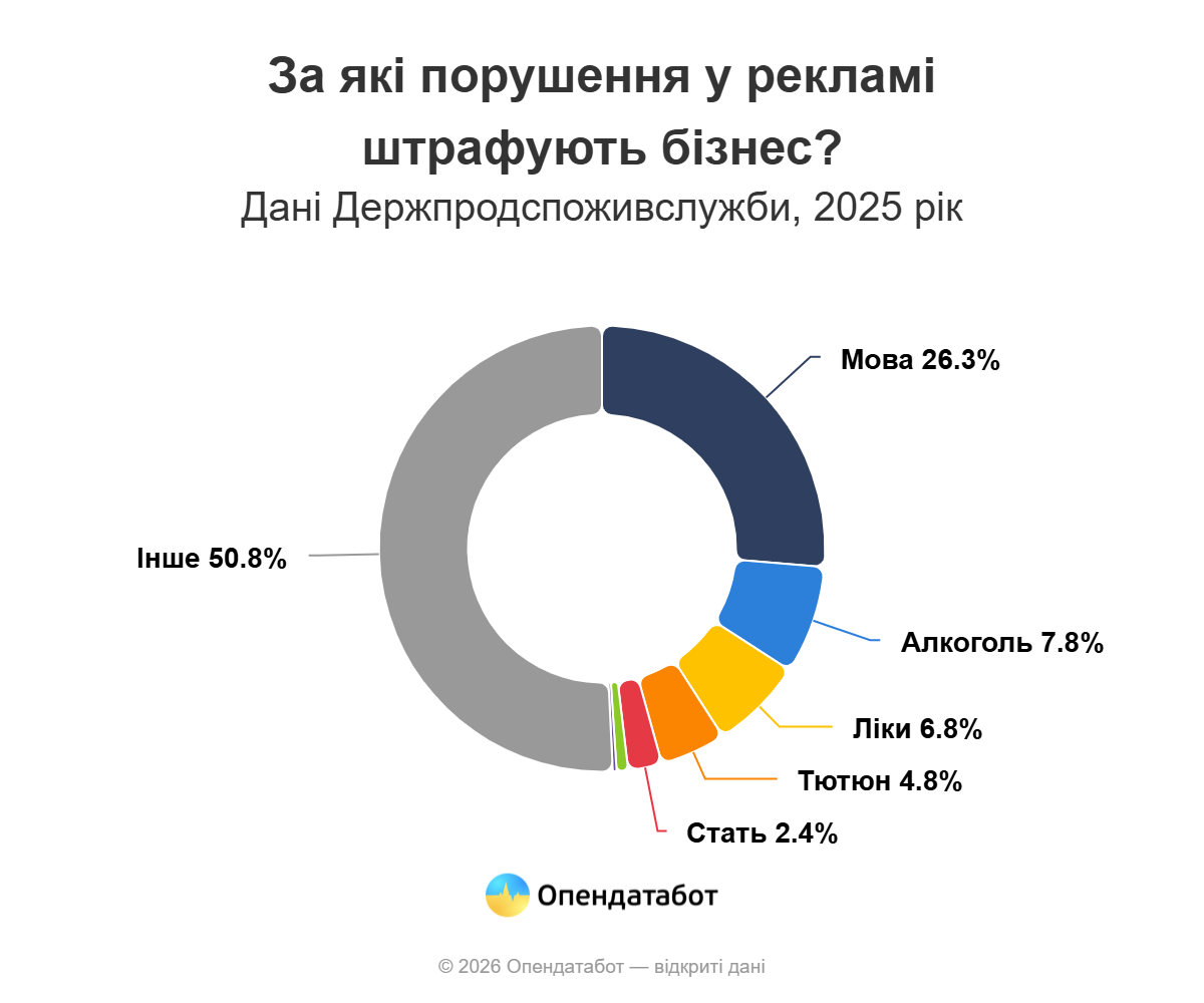 Понад половина перевірок стосувалась зовнішньої реклами. Водночас Держпродспоживслужба стала активніше перевіряти промо у соцмережах та на сайтах. В Україні виявили 4 тисячі 85 порушень.