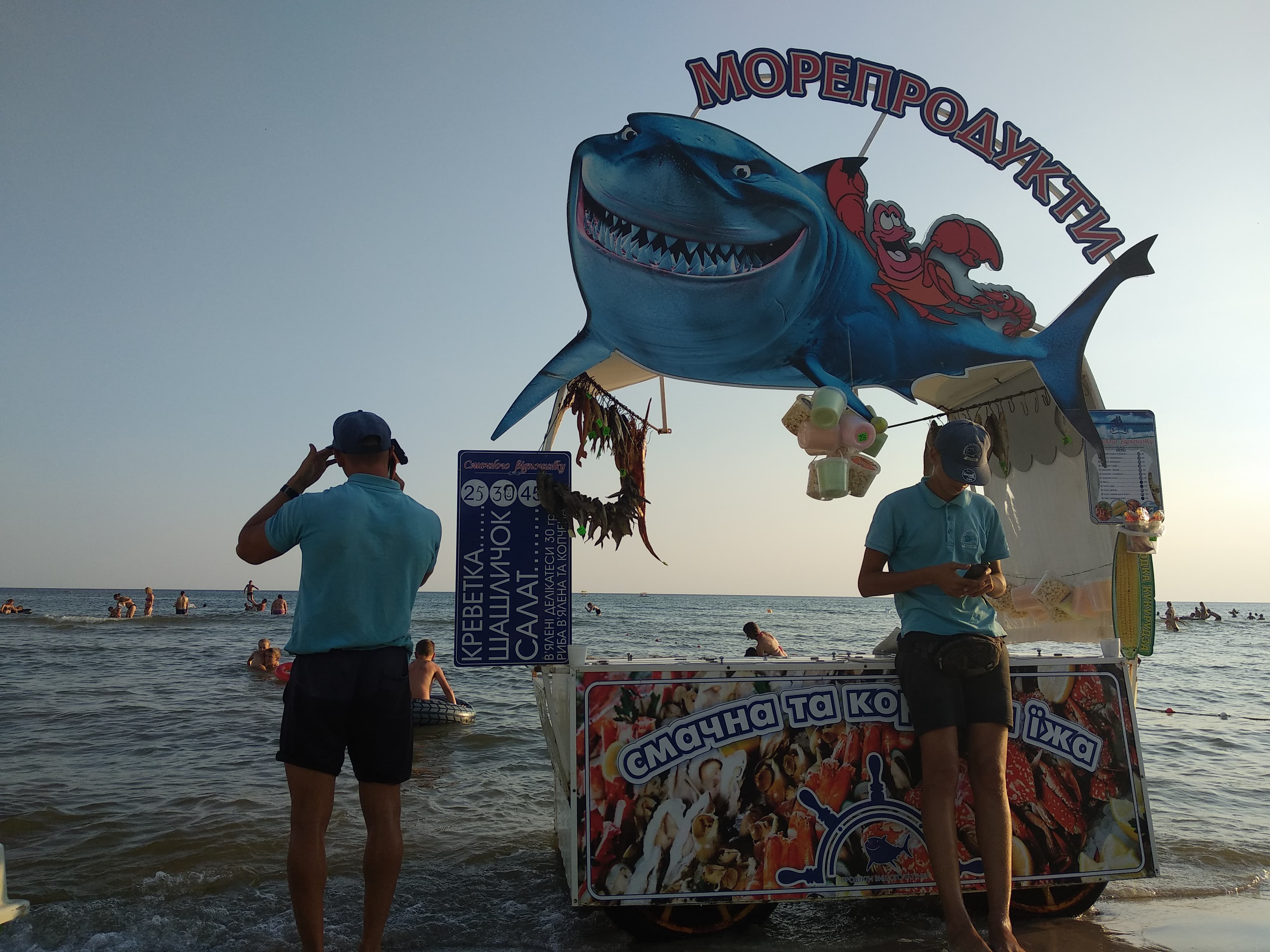 Є й геть екзотика. Пляжем походжають двоє темношкірих молодиків, з одягу на них – пов’язки на стегнах. Пропонують сфотографуватися з ними за 50 гривень. Диво, але ця атракція – одна з найпопулярніших, до хлопців шикується черга. «Дай-но я тебе торкнуся, чи ти хоч справжній», – сміється повнотіла жінка.
