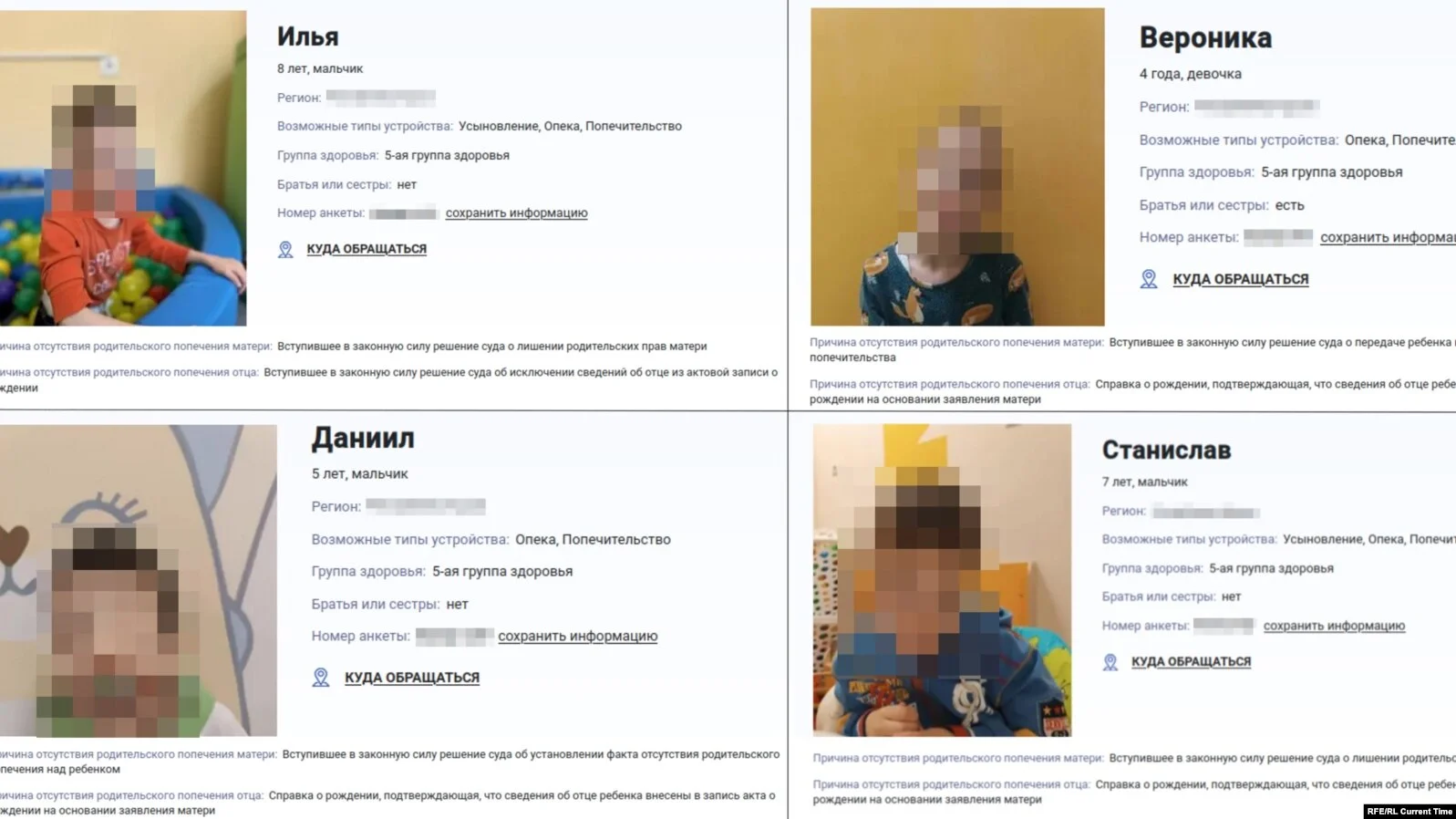 В анкетах не згадується, що діти українці та з Херсона. Особи дітей і їхні особисті дані приховані з міркувань безпеки, але їхні дані є у розпорядженні редакції, додають у Радіо Свобода.