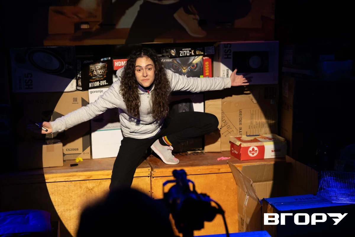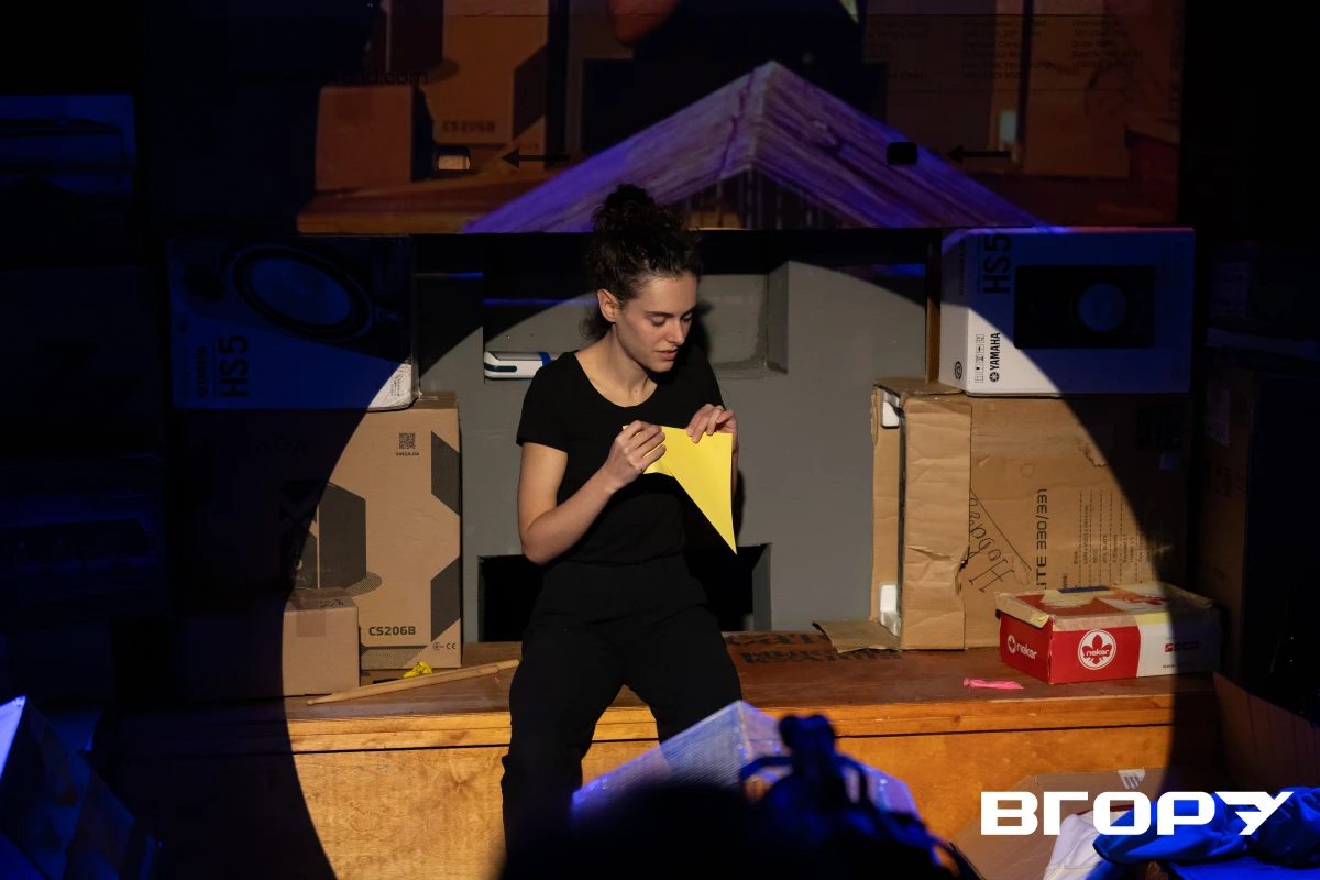 Відеосупровід до вистави підготував Сергій Сиротюк. Головну роль у постановці виконала акторка Марія Шапочка.