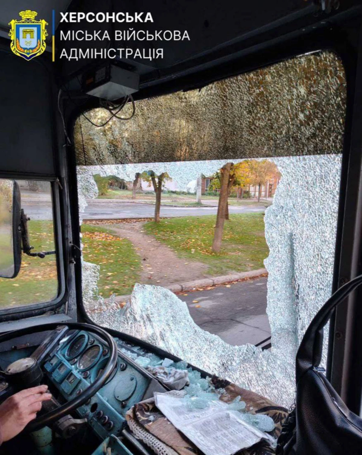 У Корабельному районі Херсона 15 жовтня 2025 року російський дрон скинув вибухівку поблизу тролейбуса, який працював на маршруті № 9.