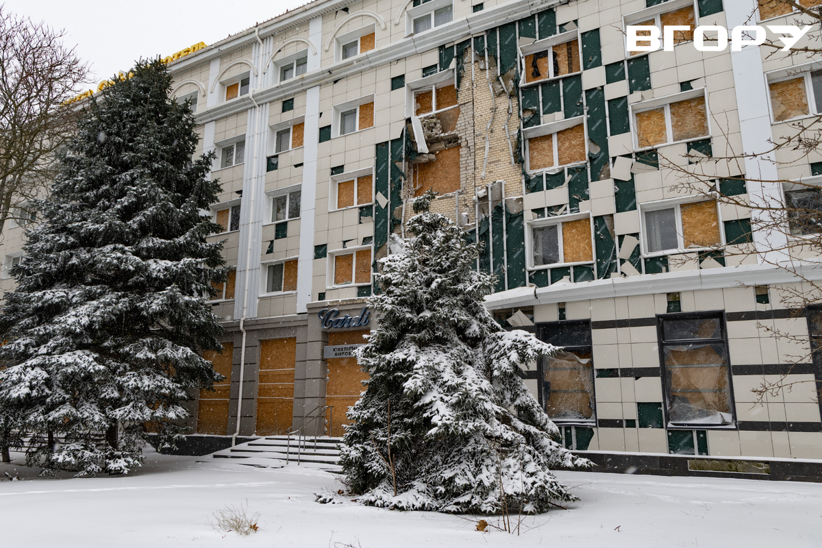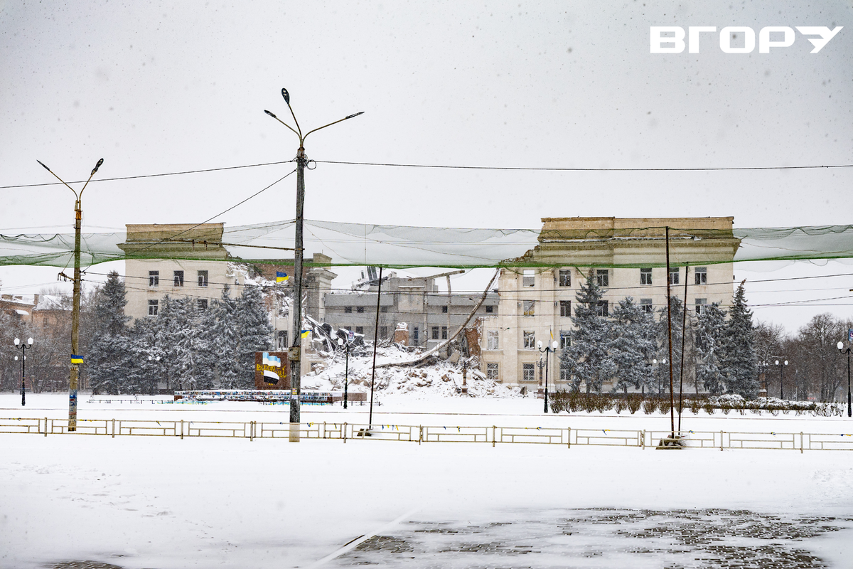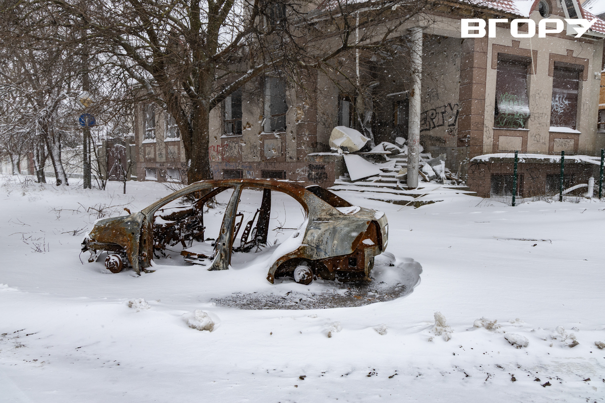 Хоч сніг і приховує сліди війни на вулицях міста, йому не вдається повністю сховати пошкоджені російськими обстрілами автівки та будівлі, розбиті дахи та фасади.