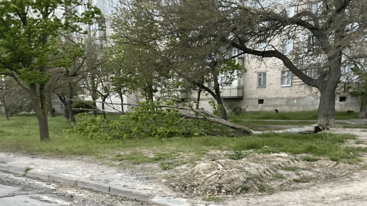 За його словами, сильний вітер пошкодив антидронові сітки у напрямку Зеленівки. У Херсоні вітер повалив дерева, які перекривають рух транспорту.