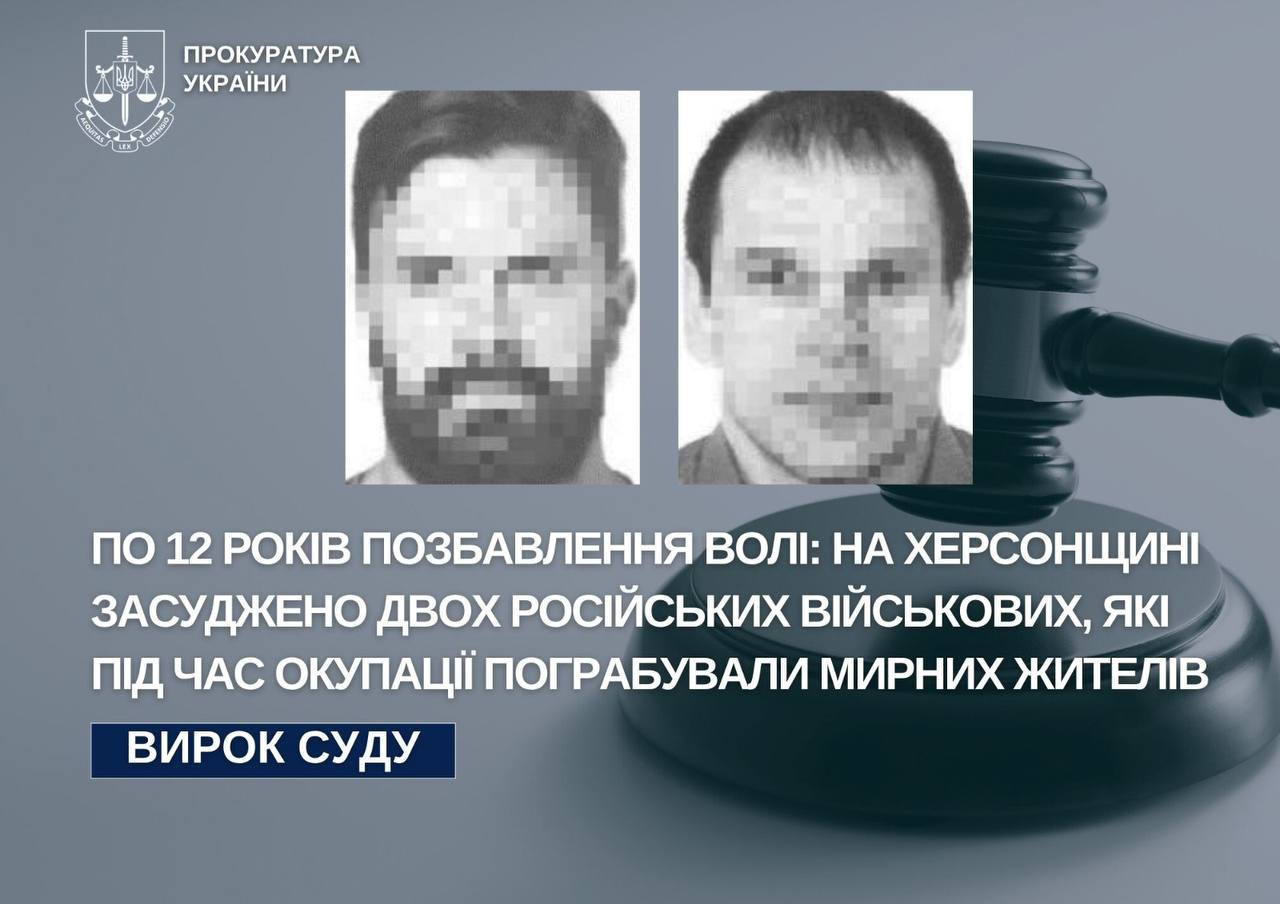 Двох російських військових визнали винними у порушенні законів та звичаїв війни. Суд призначив кожному з них по 12 років позбавлення волі.