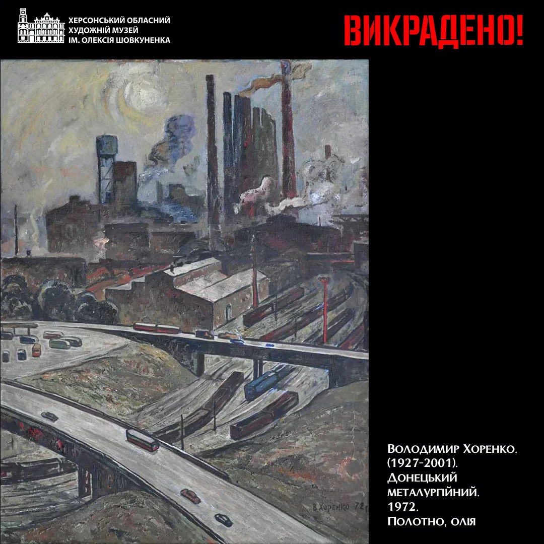 Серед ідентифікованих робіт ідентифікували полотно Володимира Хоренка «Донецький металургійний», написана у 1972 році.