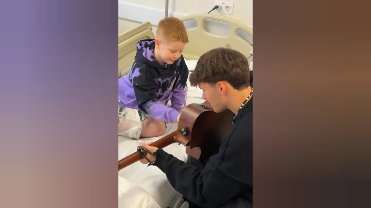 Український співак Yaktak (справжнє ім'я – Ярослав Карпук) завітав до центру воєнної травми Superhumans Center у Львові та заспівав із хлопчиком із Херсона Артемом, який втратив ногу внаслідок російської атаки.