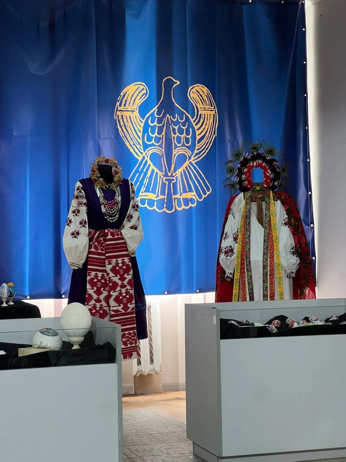 Експозиція презентує колекцію українських писанок, створених на лівобережжі Херсонщини, і які вдалося вивезти із тимчасово окупованих територій.
