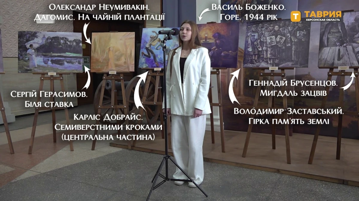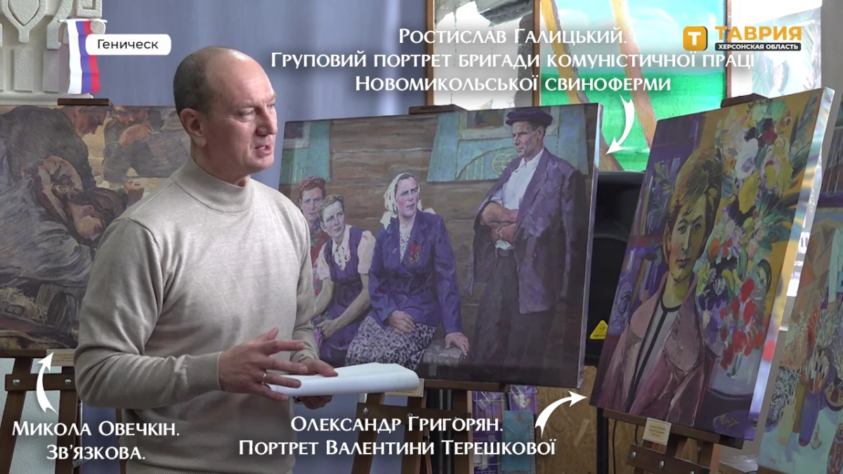 У тимчасово окупованому Генічеську, в приміщенні кінотеатру, відкрили виставку "до 8 березня". На ній демонстрували роздруковані репродукції творів, викрадених з Херсонського обласного художнього музею імені Олексія Шовкуненка.