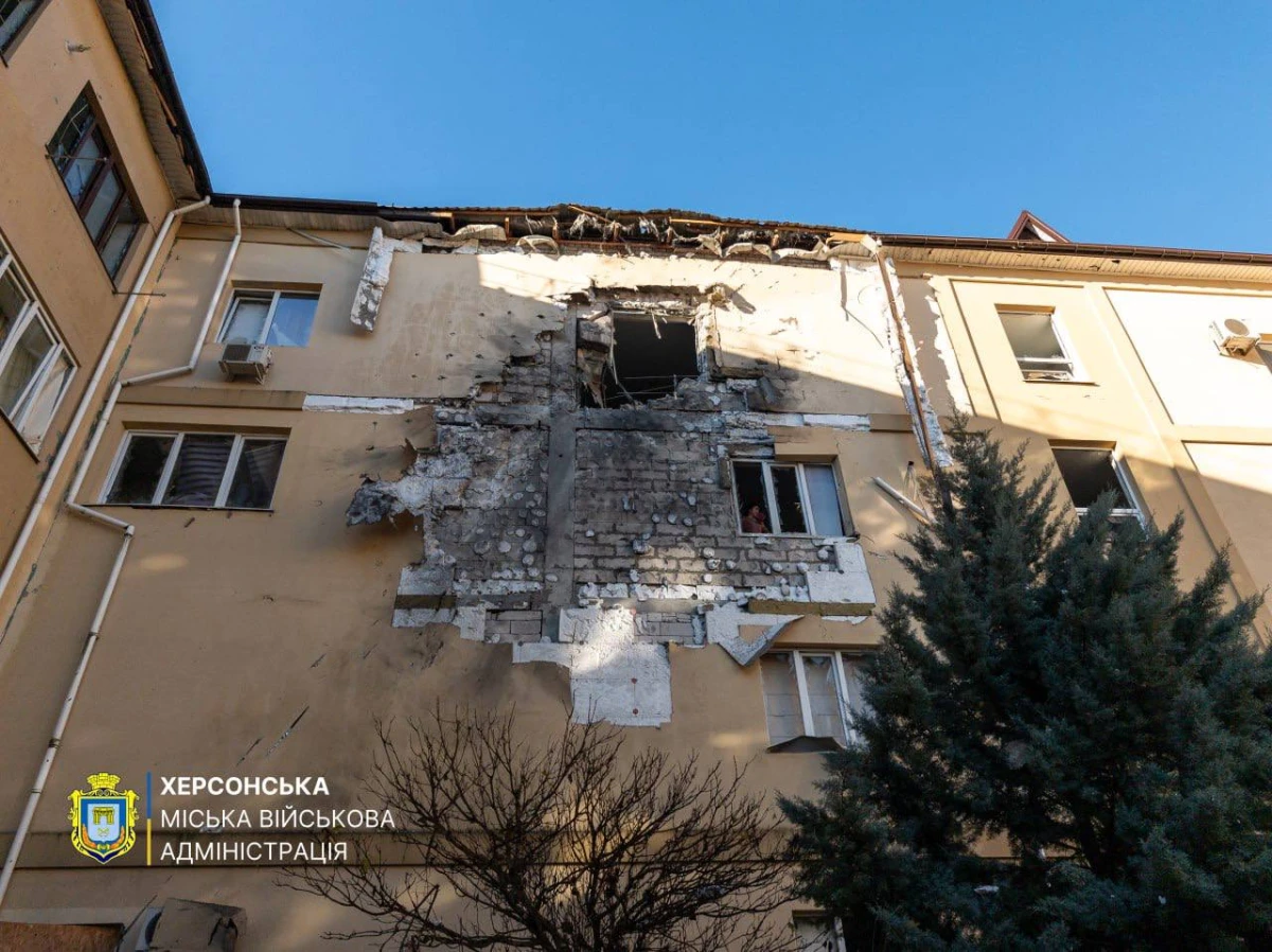 Фото з наслідками обстрілу опублікував начальник Херсонської МВА Ярослав Шанько.