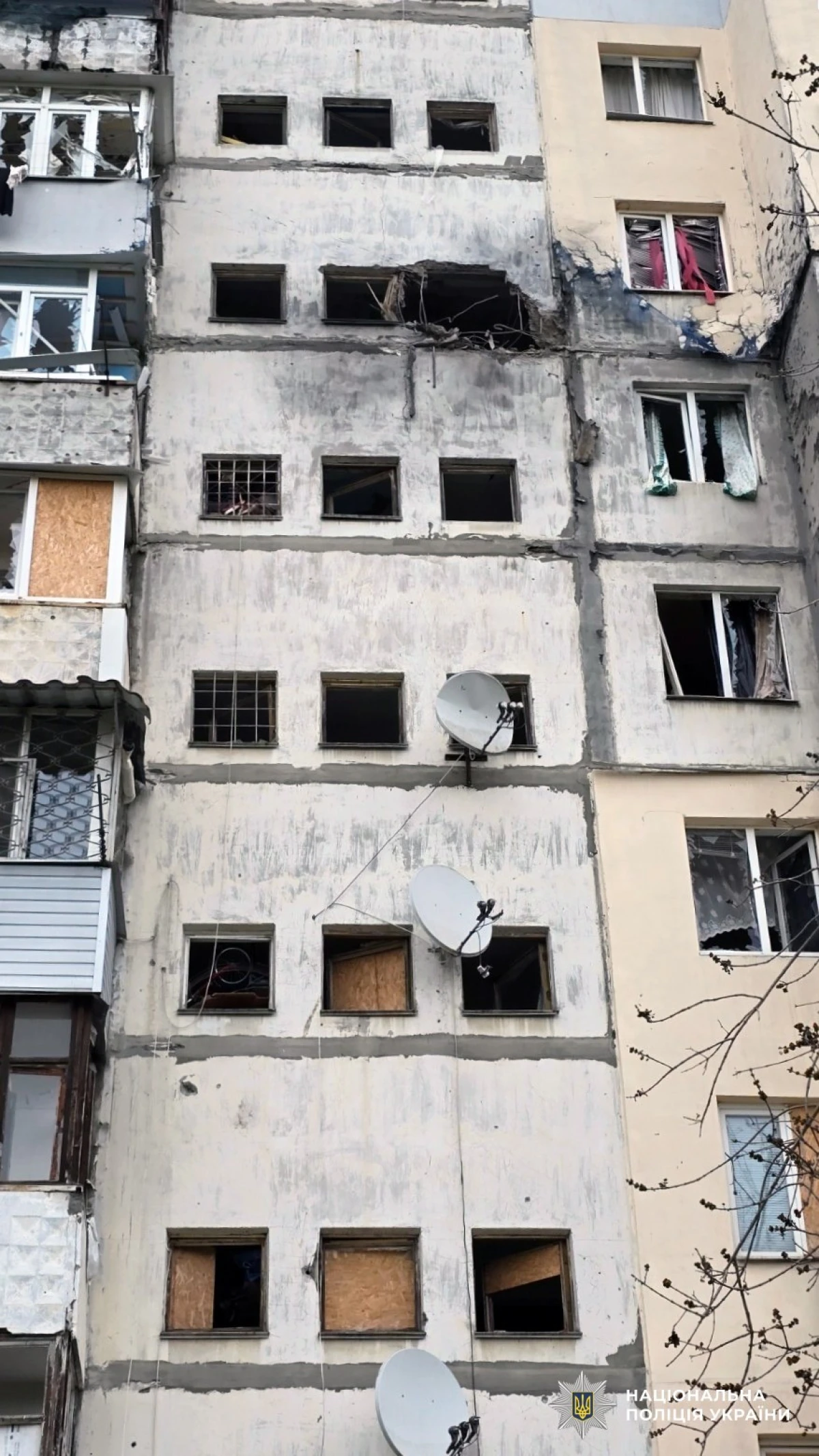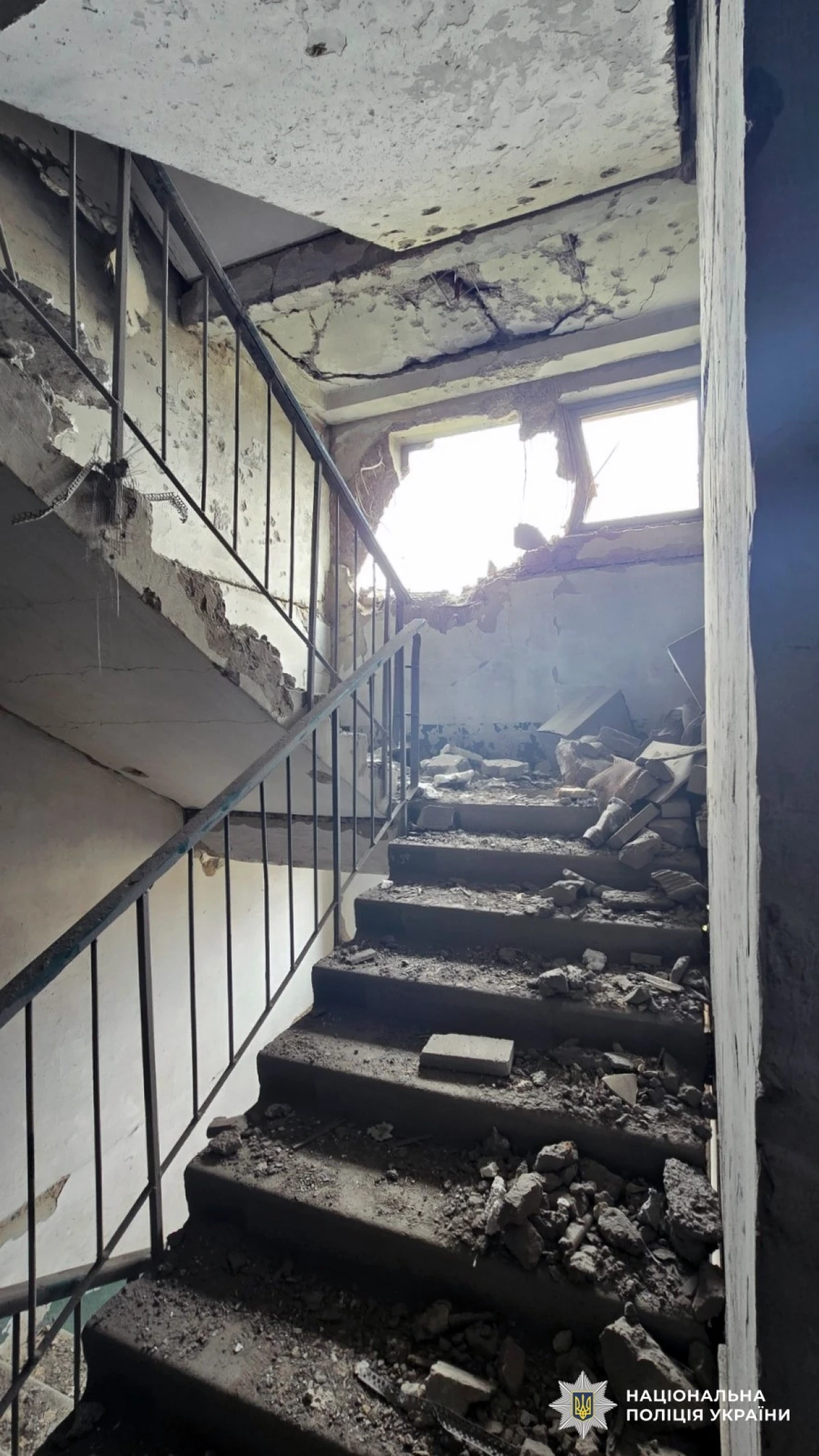 Правоохоронці доставили пораненого до лікарні. У нього – мінно-вибухова травма, уламкові поранення грудної клітини й живота. Також пошкоджені чотири багатоквартирні будинки.