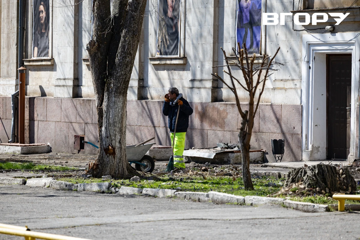 У театрі сьогодні лагодили пошкодження та прибирали наслідки обстрілу на прилеглій території.