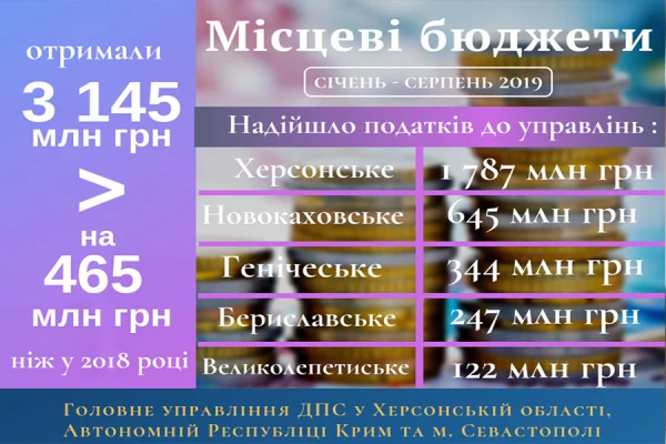 Місцеві бюджети Херсонщини отримали 3 мільярди гривень податків