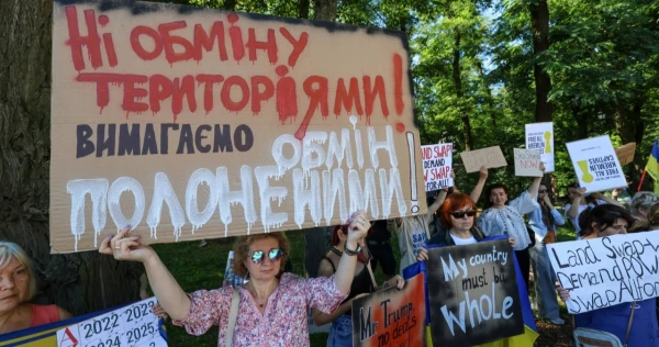“Не міняйте території, міняйте полонених”. У Києві люди вийшли на акцію перед зустріччю Трампа та Путіна