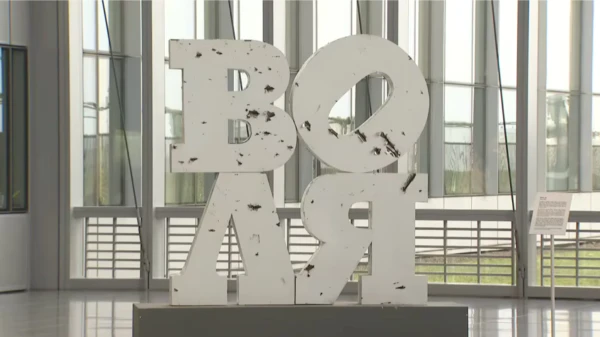 У штаб-квартирі НАТО розмістили слово, викладене з обстріляних літер назви села Любимівка на Херсонщині