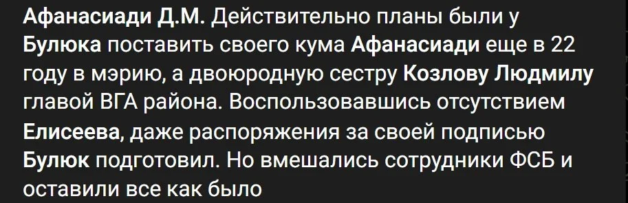 Про ймовірне кумівство та дружні стосунки цих двох осіб розповідають і жителі Скадовська, які виїхали з окупації. За їхніми словами, саме завдяки впливу Булюка Афанасіаді побудував кар’єру на митниці, а згодом отримав і посаду заступника міського голови Скадовська.