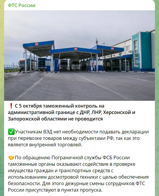 Фото з телеграм-каналу Федеральної митної служби РФ