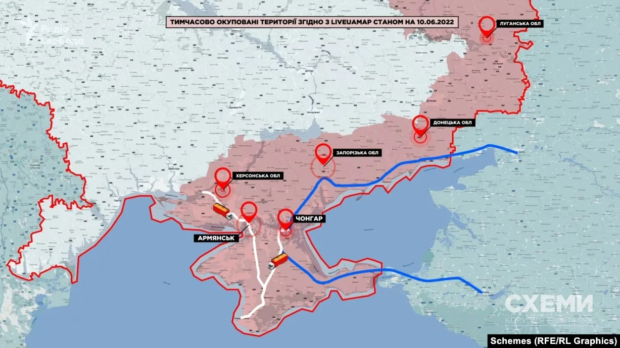 У квітні 2023 року перетин між Херсонщиною та Кримом оформлювався за спрощеною процедурою без перевірки вантажів, а вже в липні окупаційна влада повністю скасувала паспортний контроль, писали у Суспільне. Водночас у січні 2024 року підконтрольний Росії керівник Криму Сергій Аксьонов запровадив «особливий режим» в’їзду та виїзду на адміністративній межі з окупованою частиною Херсонської області.