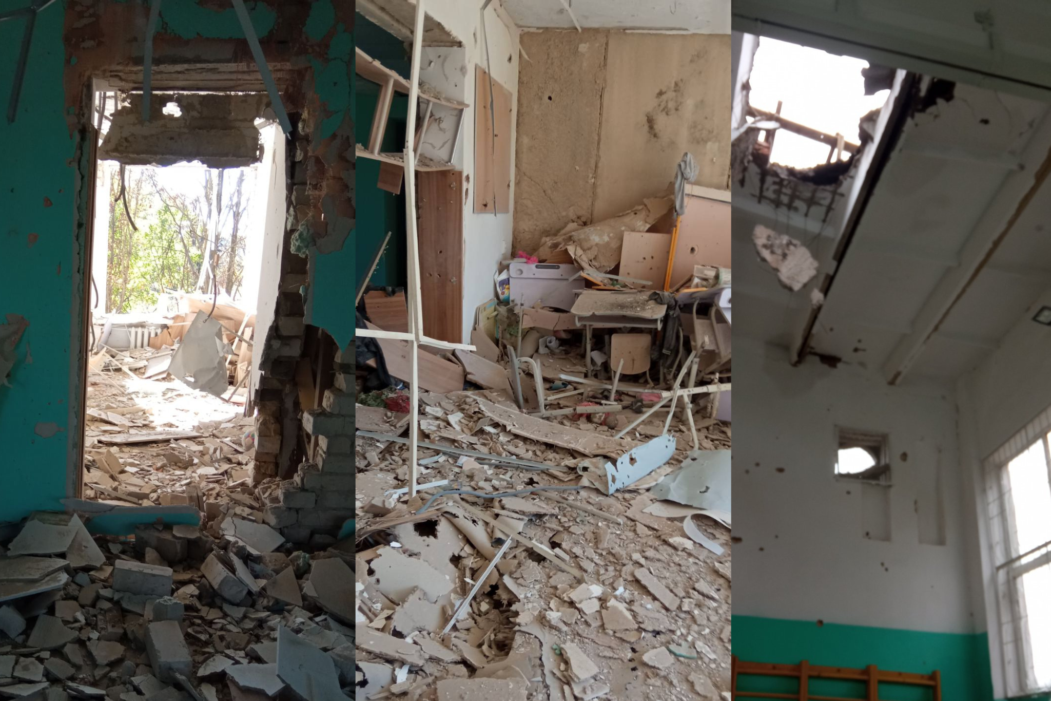 Руйнування у школі у Великій Олександрівці. Колаж: фото з платформи DREAM