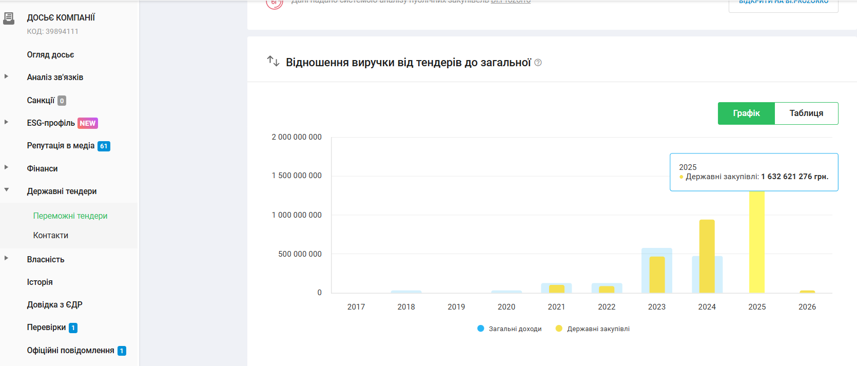 Відношення виручки тендерів до загальної ТОВ “Укр-буд-проект-реконструкція”