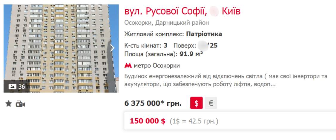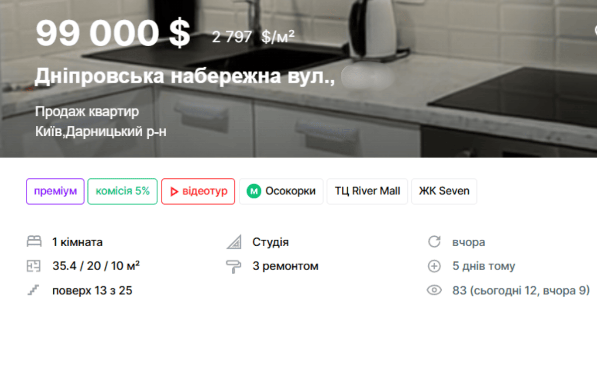 Скриншот зі сайту Rieltor.ua від Лун