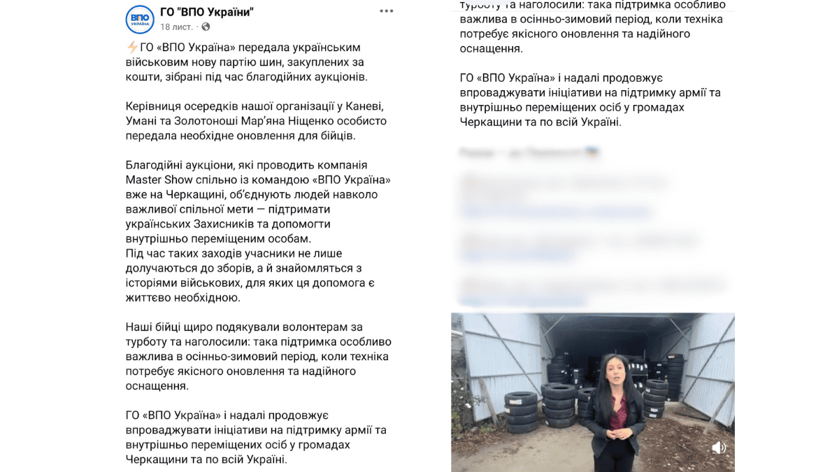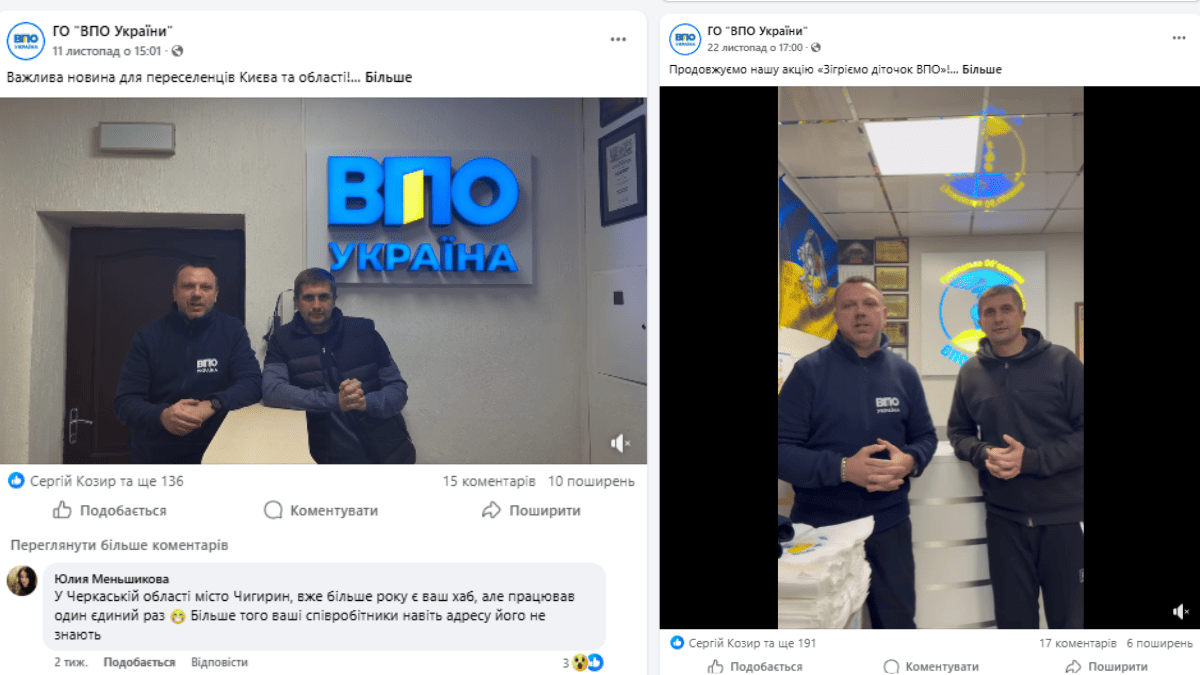 Скриншот дописів зі сторінки ГО “ВПО” у фейсбуці