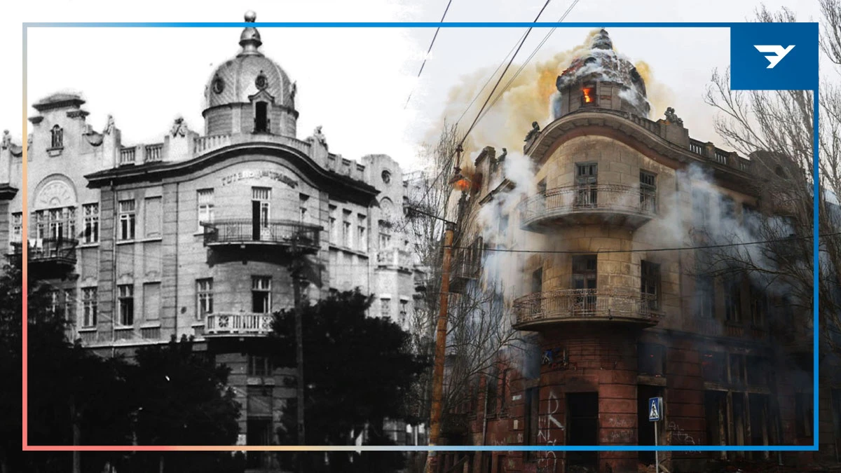 Фасад будинку Скарлато у 2025 році, понівечений російськими обстрілами. Фото: з мережі