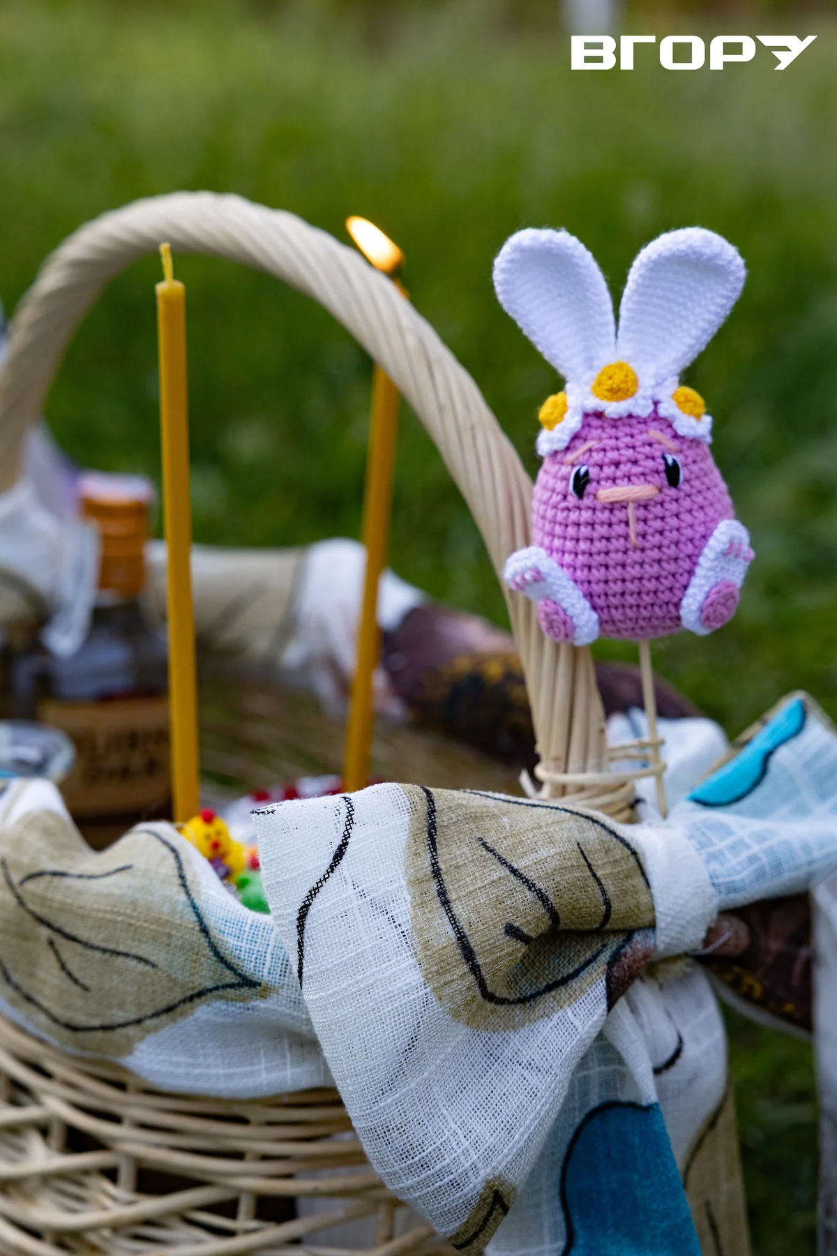 Іграшка-заєць у пасхальному кошику. Фото Олександра Андрющенка/”Вгору”