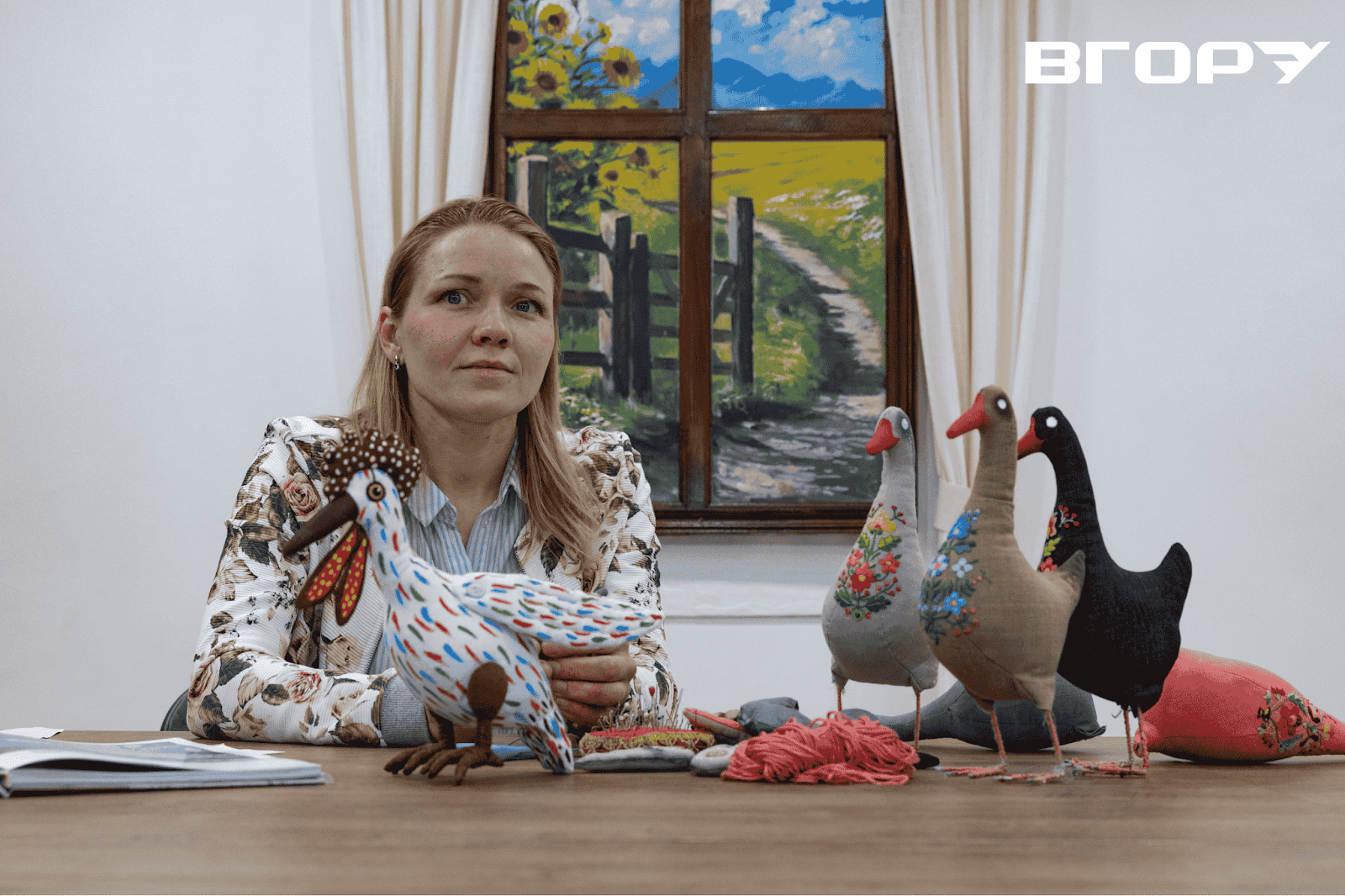 Художниця та майстриня декоративно-ужиткового мистецтва вже близько 20 років працює в херсонському театрі помічницею художника. У вільний час вона шиє унікальні м’які іграшки – зокрема й херсонських бойових гусей, розмальовує гільзи.