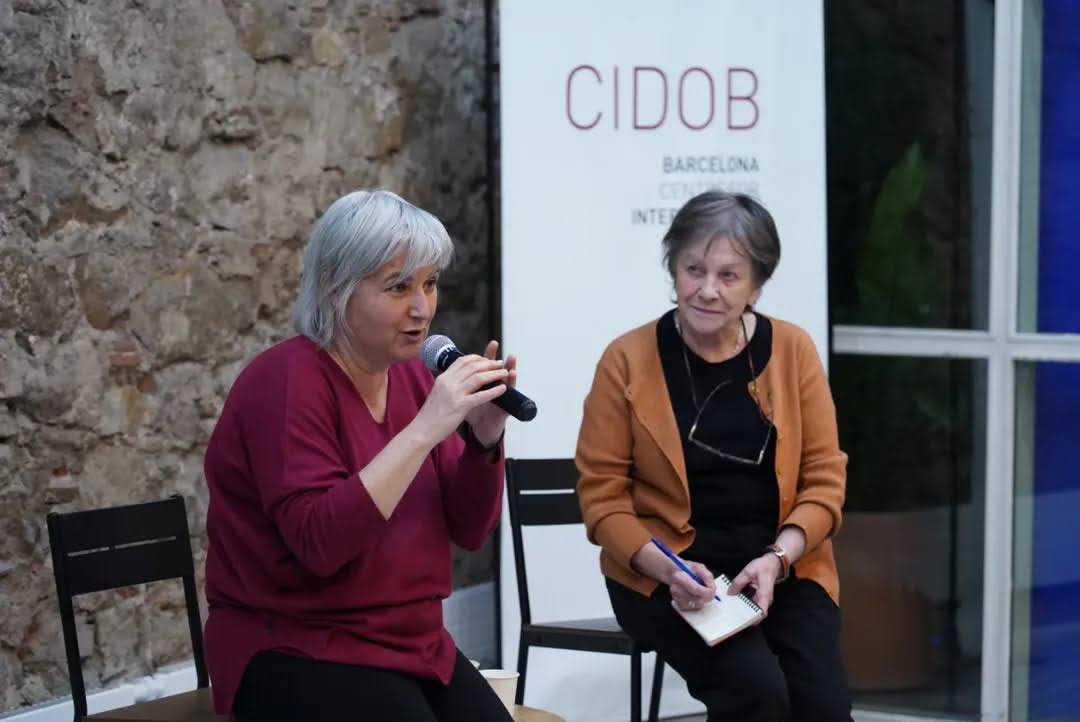 Крістіна Мас (ліворуч) та Кармен Клаудін (праворуч) під час дебатів після показу стрічки “Kherson: Human Safari”. Фото: Cidobbarcelona