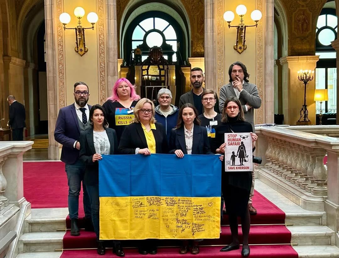Волонтери прагнуть нагадувати про Херсон і його жителів у різний спосіб. Нещодавно постер “Stop Human Safari. Save Kherson” розмістили в парламенті Каталонії під час прес конференції, організованої українською спільнотою в Барселоні. Активісти та депутати зробили спільне фото з цим постером.